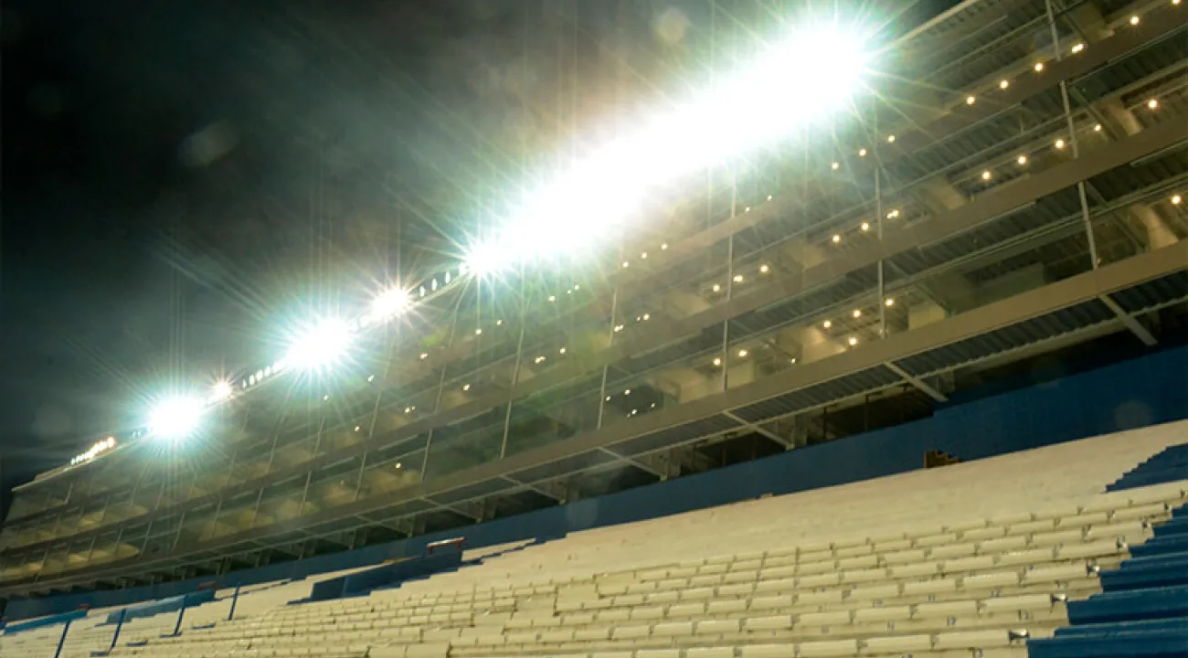 Diseñamos e implementamos el sistema de iluminación para una cancha deportiva y su área de calentamiento, cumpliendo con los niveles lumínicos requeridos para un uso seguro y eficiente del espacio.
